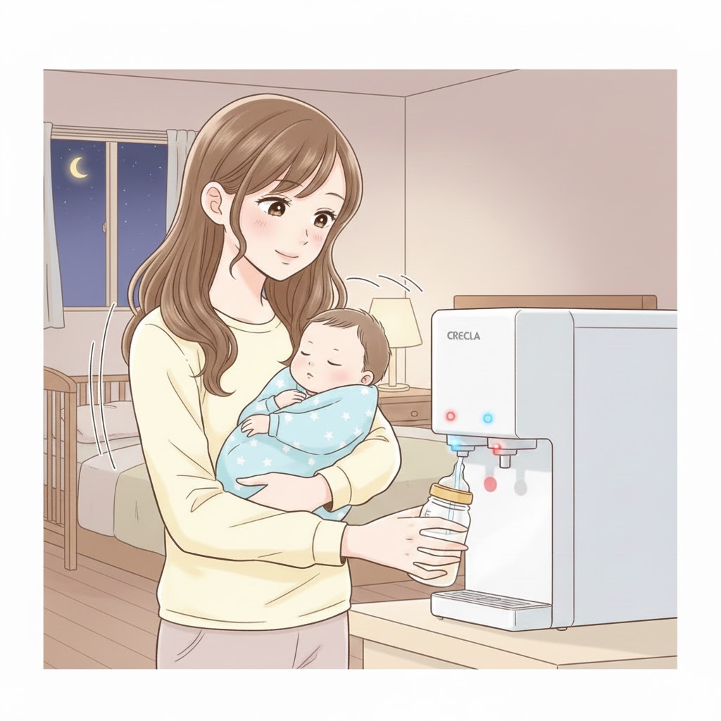 夜中の授乳で、一刻も早くミルクを作ってあげたいのに…」「ウォーターサーバーの水は本当に赤ちゃんにそのまま使って大丈夫なの?」