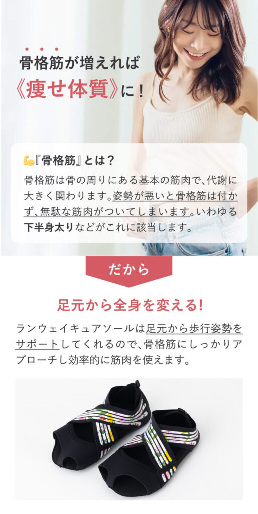 公式サイト☞履くだけでずっと美姿勢 全身の筋肉稼働率UP!【ランウェイキュアソール】